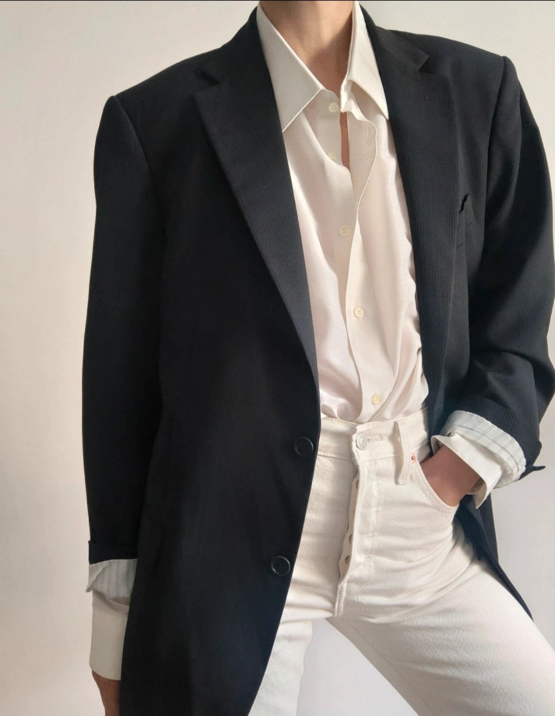 Dal taglio classico e maschile, ha una vestibilità ampia che valorizza qualsiasi silhouette.