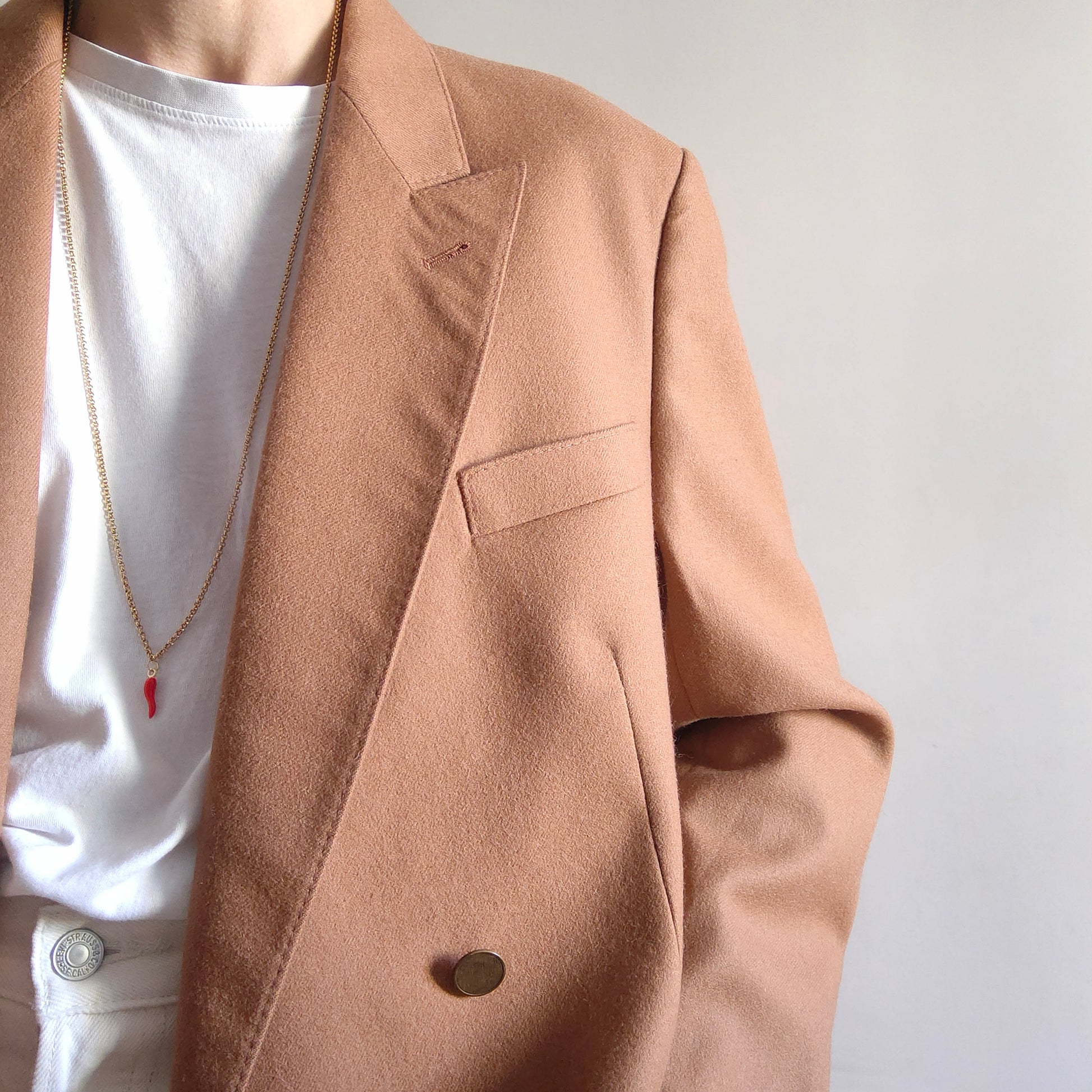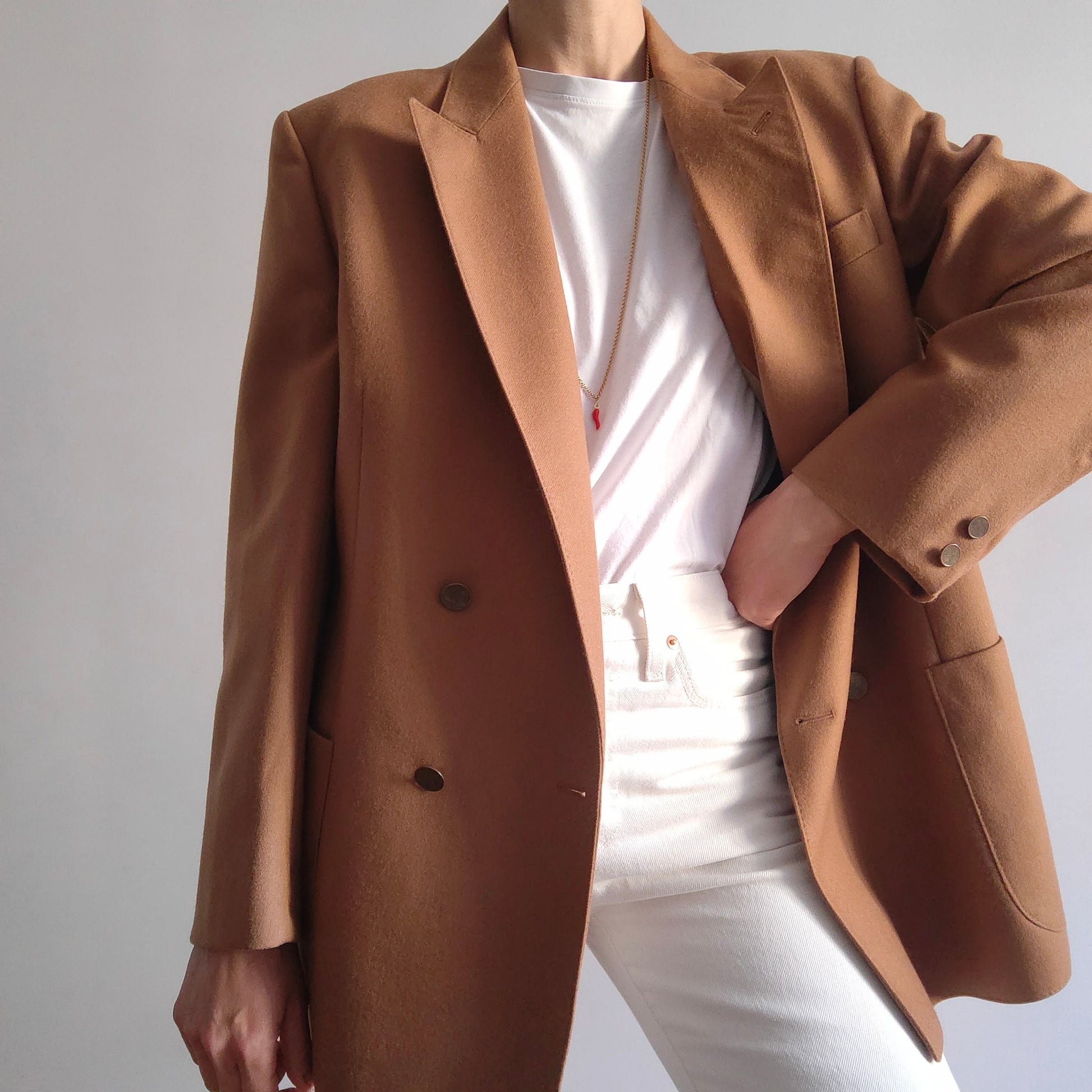 Dal taglio classico e maschile, ha una vestibilità ampia che valorizza qualsiasi silhouette.