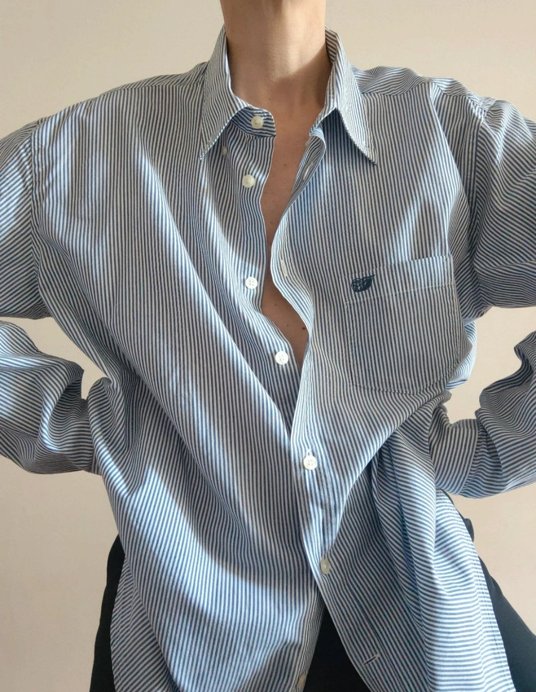 Camicia oversize da uomo, perfetta per una donna dallo stile unico e senza tempo.
