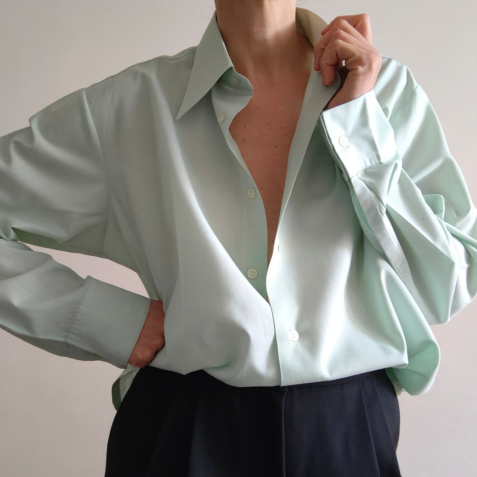 Camicia oversize da uomo, perfetta per una donna dallo stile unico e senza tempo.