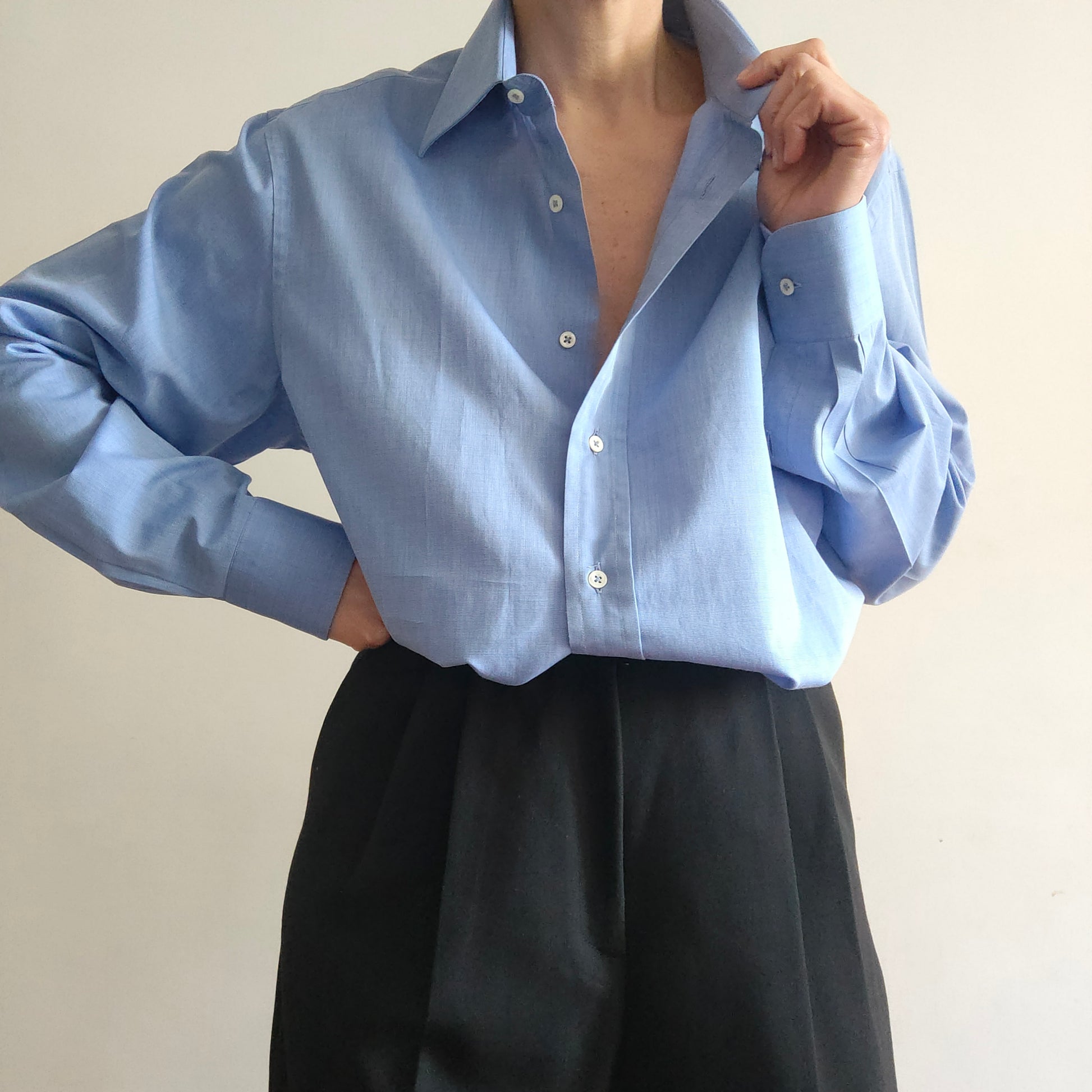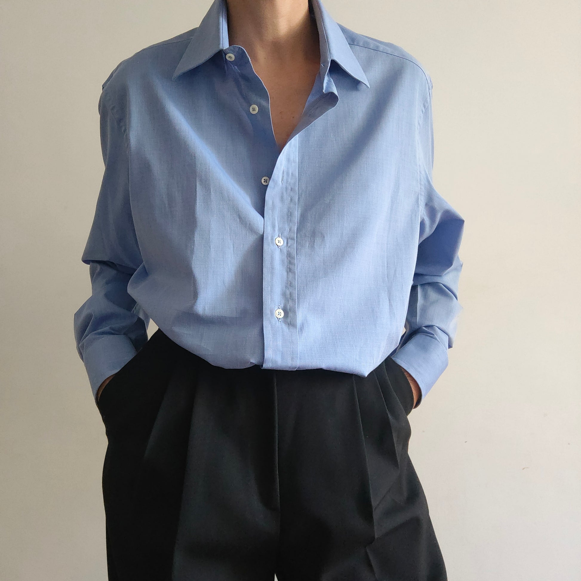 Camicia oversize da uomo, perfetta per una donna dallo stile unico e senza tempo.